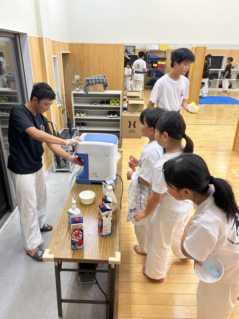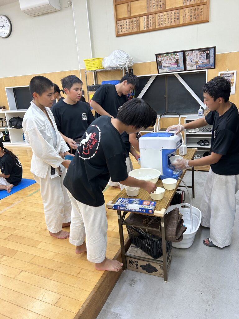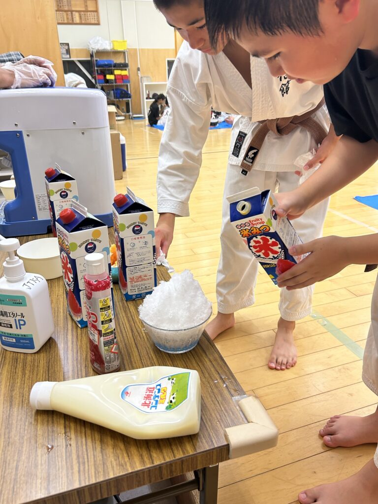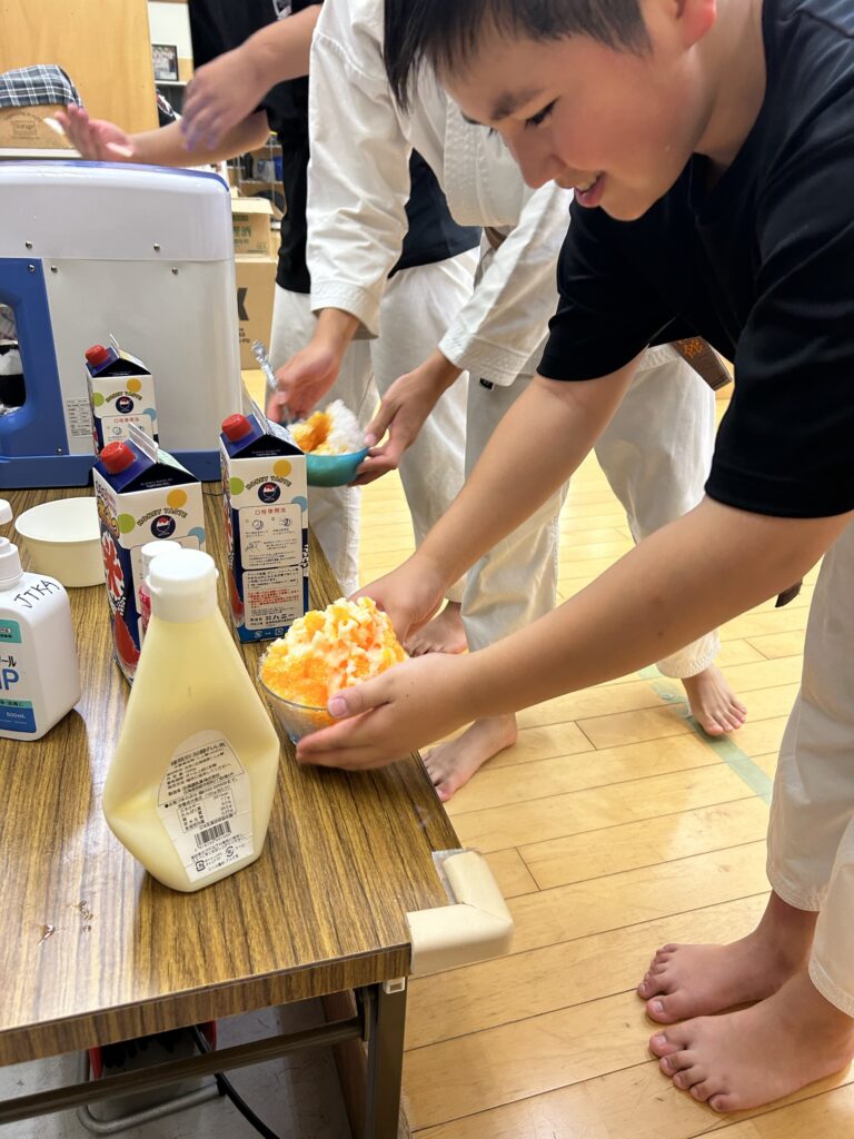 伝統派防具付空手道®︎の『心を磨く合宿』でかき氷シロップがたくさん余り、それを敬信館で戴くことに。