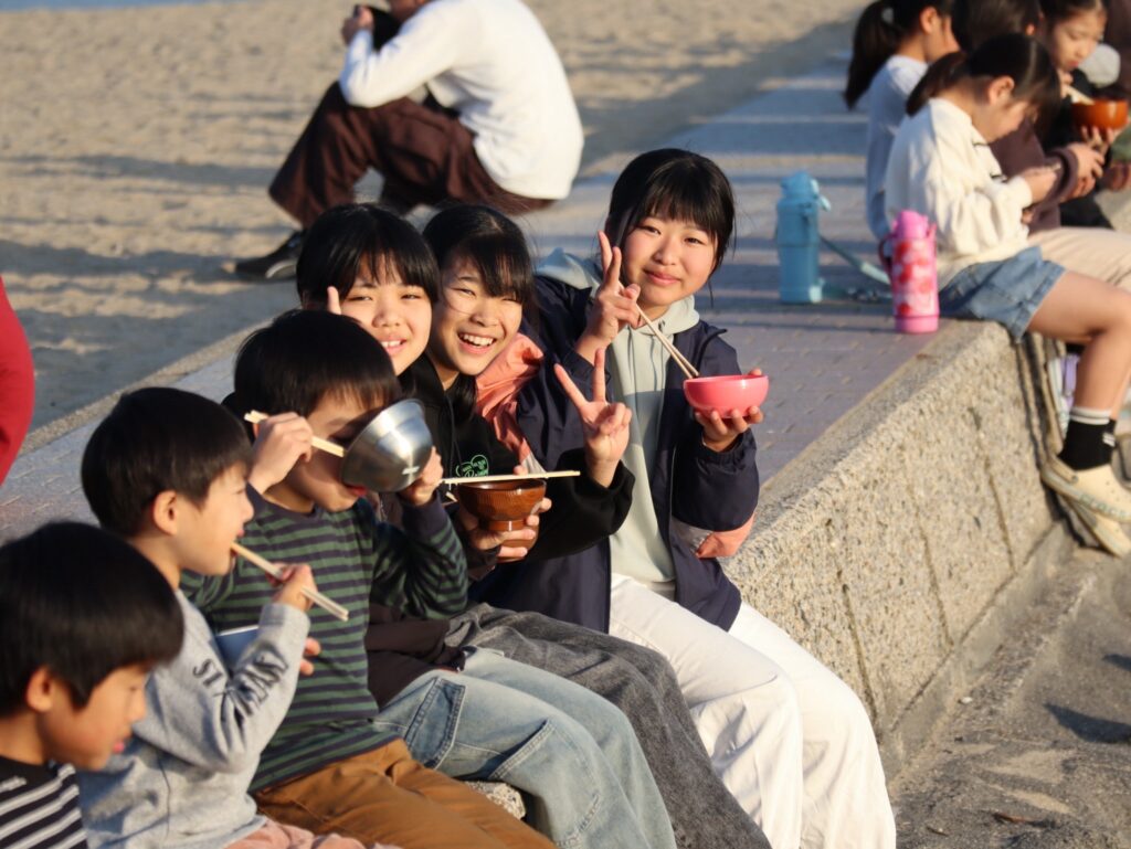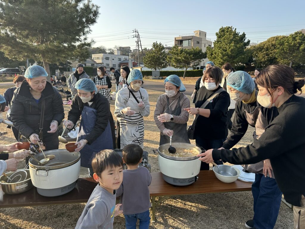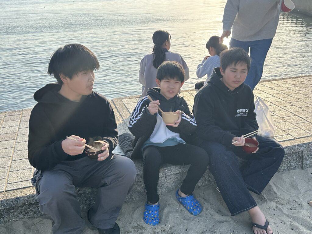 海から上がった後は、保護者の皆様が協力して作ってくださった温かい豚汁をいただきました😊