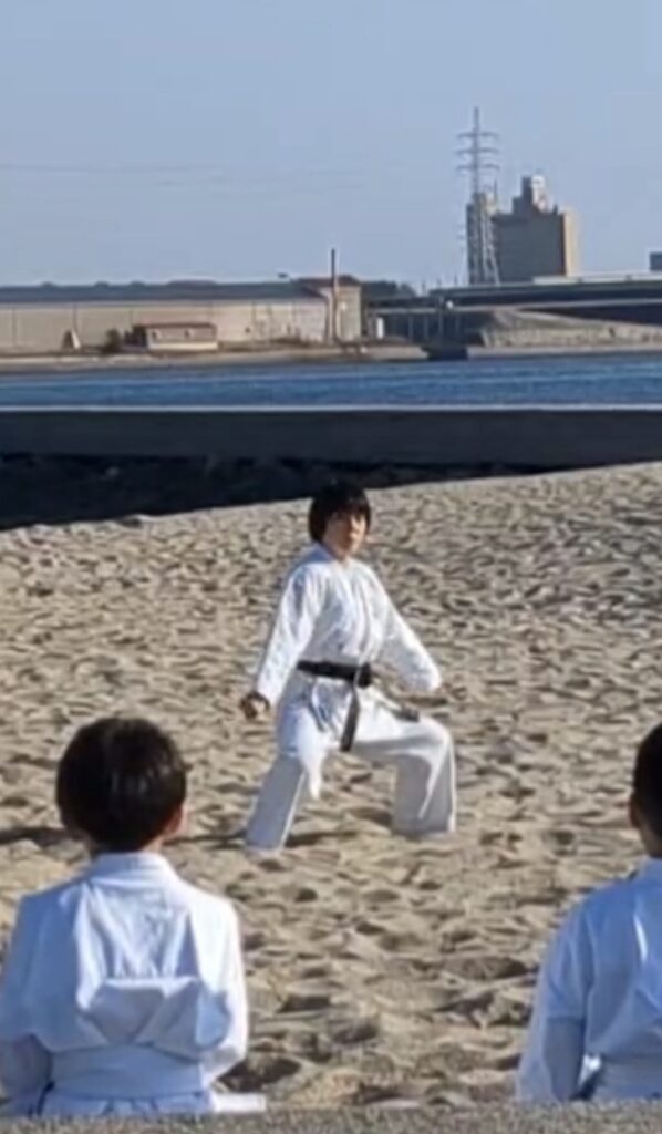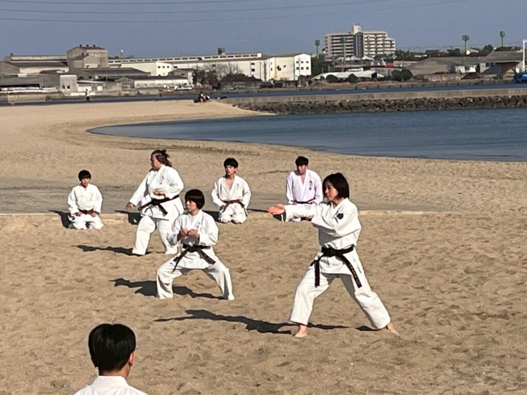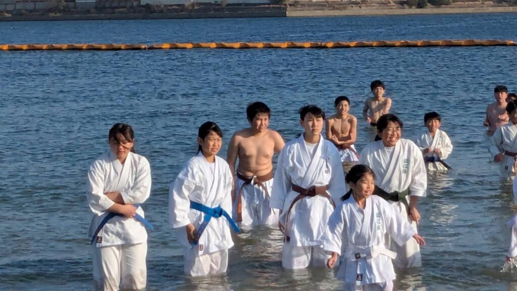 道着のまま海へ